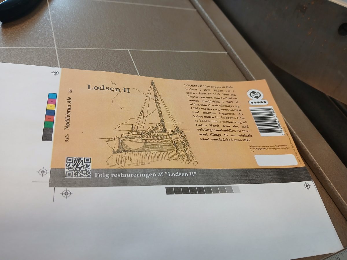 I dag står den på klippe-klistre arbejde. Lodsen II er en private label etikette, som er lavet til renoveringsprojektet Losen II. På trods af min gamle farveprinters tvivlsomme formåen, giver det et prej om det færdige resultat. Går alt vel, så er etiketten kampklar til om ca. to uger.
